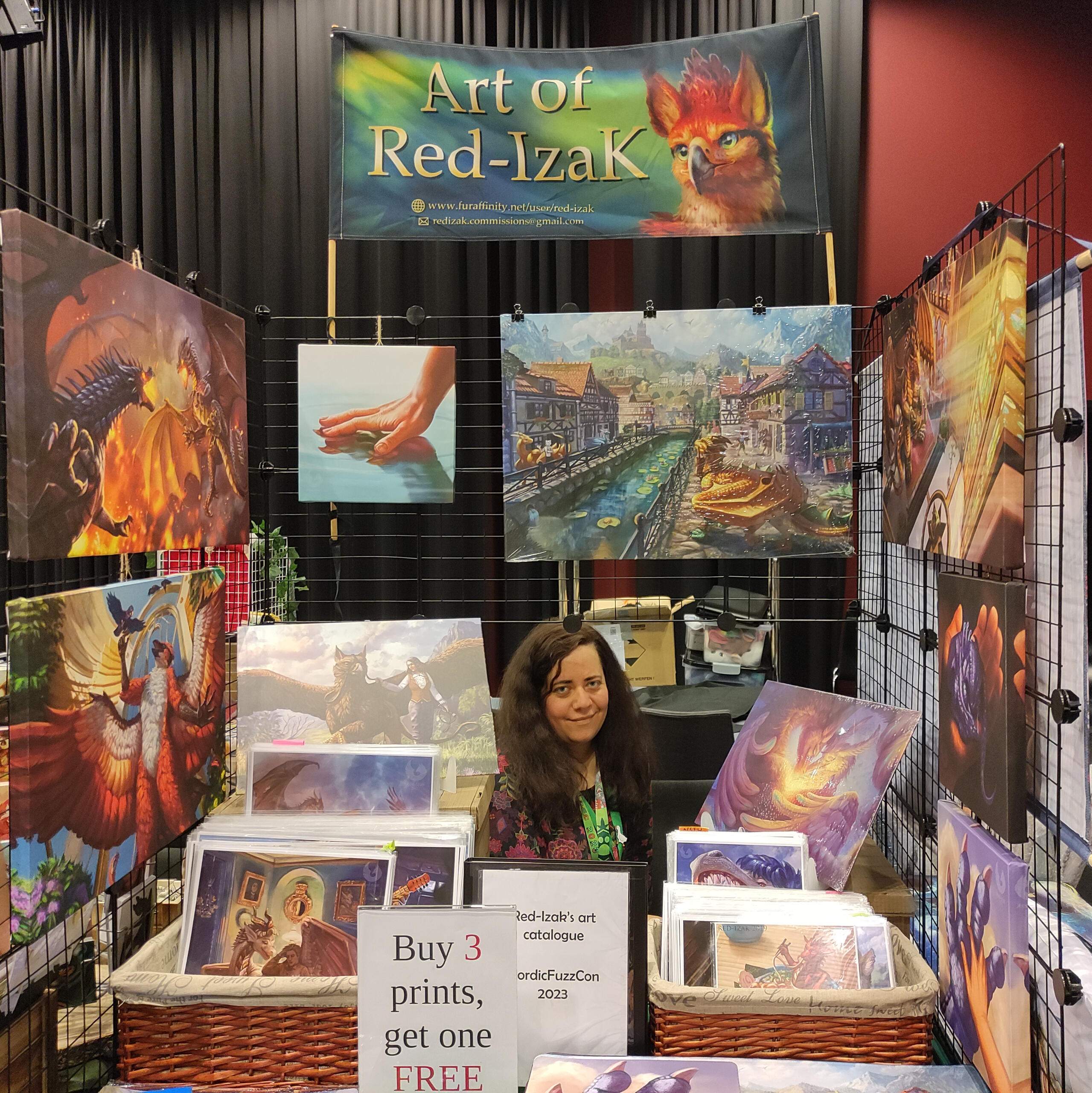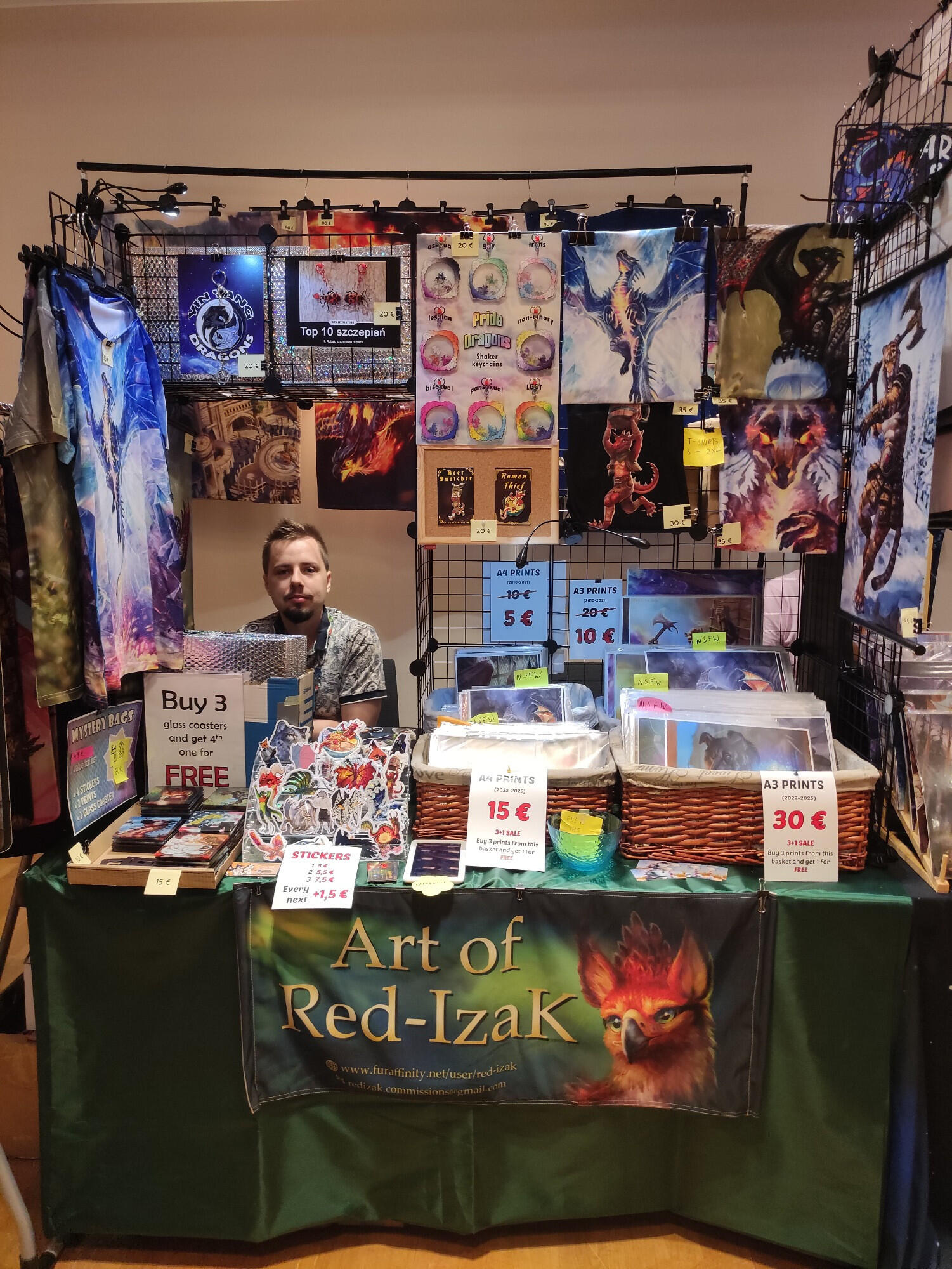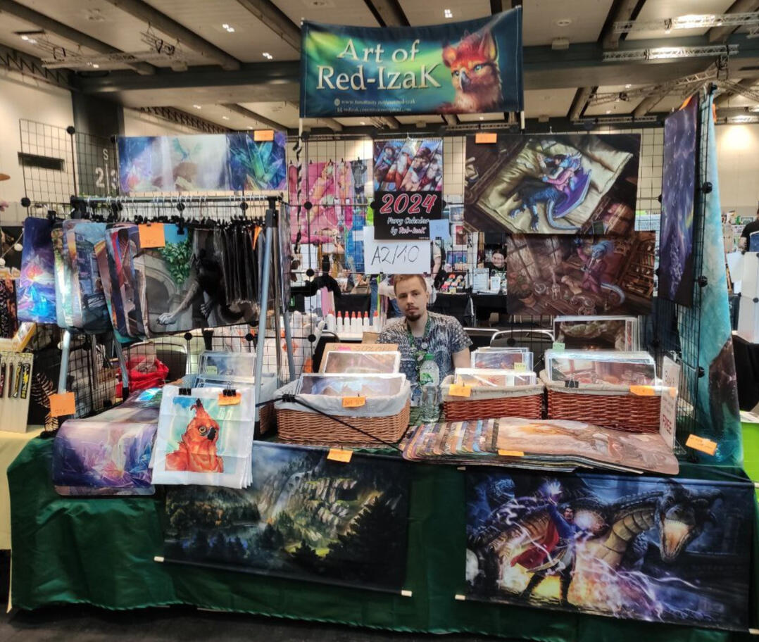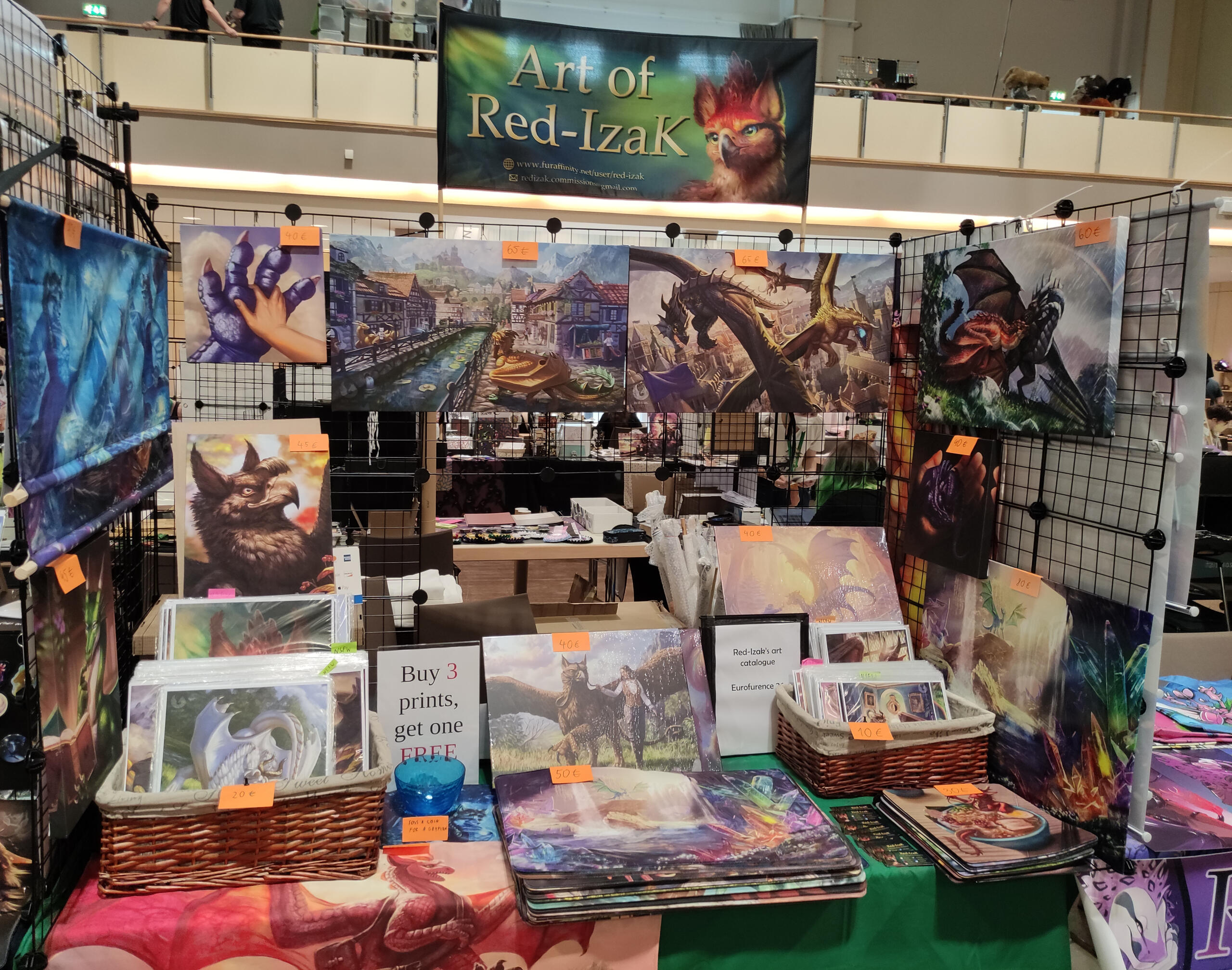 My name is Izak (Red-IzaK) and I post art online for over 20 years now! I'm a full time artist since January 2017.I started selling at Eurofurence 2017 with 20 prints and now I have over 400 individual patterns in 2025!