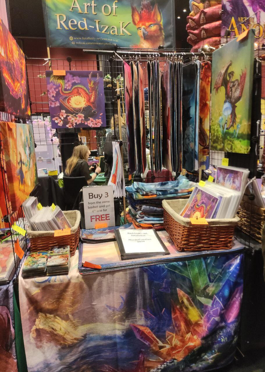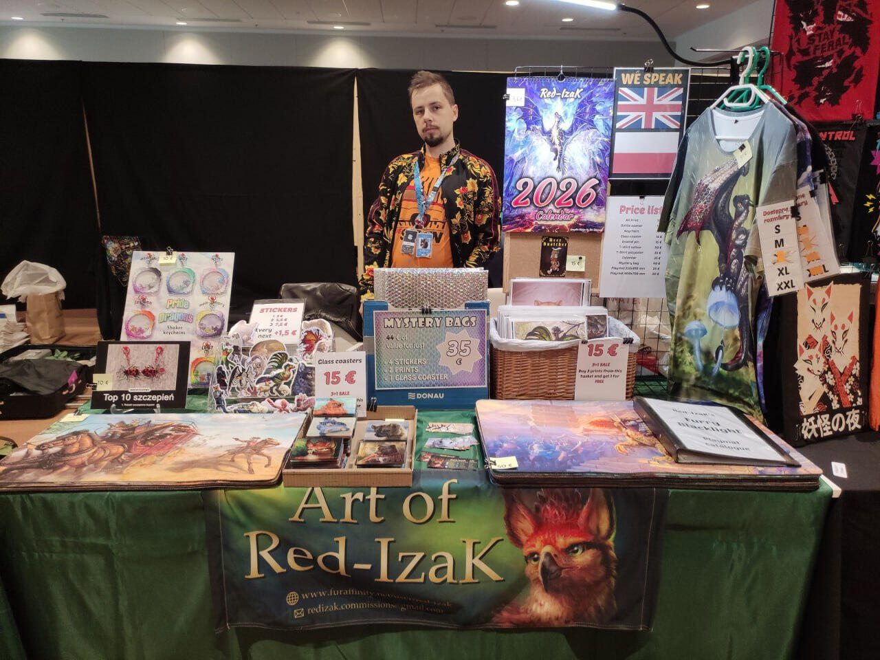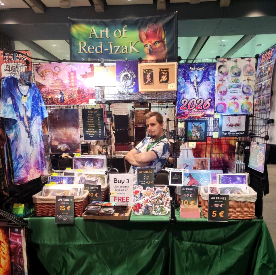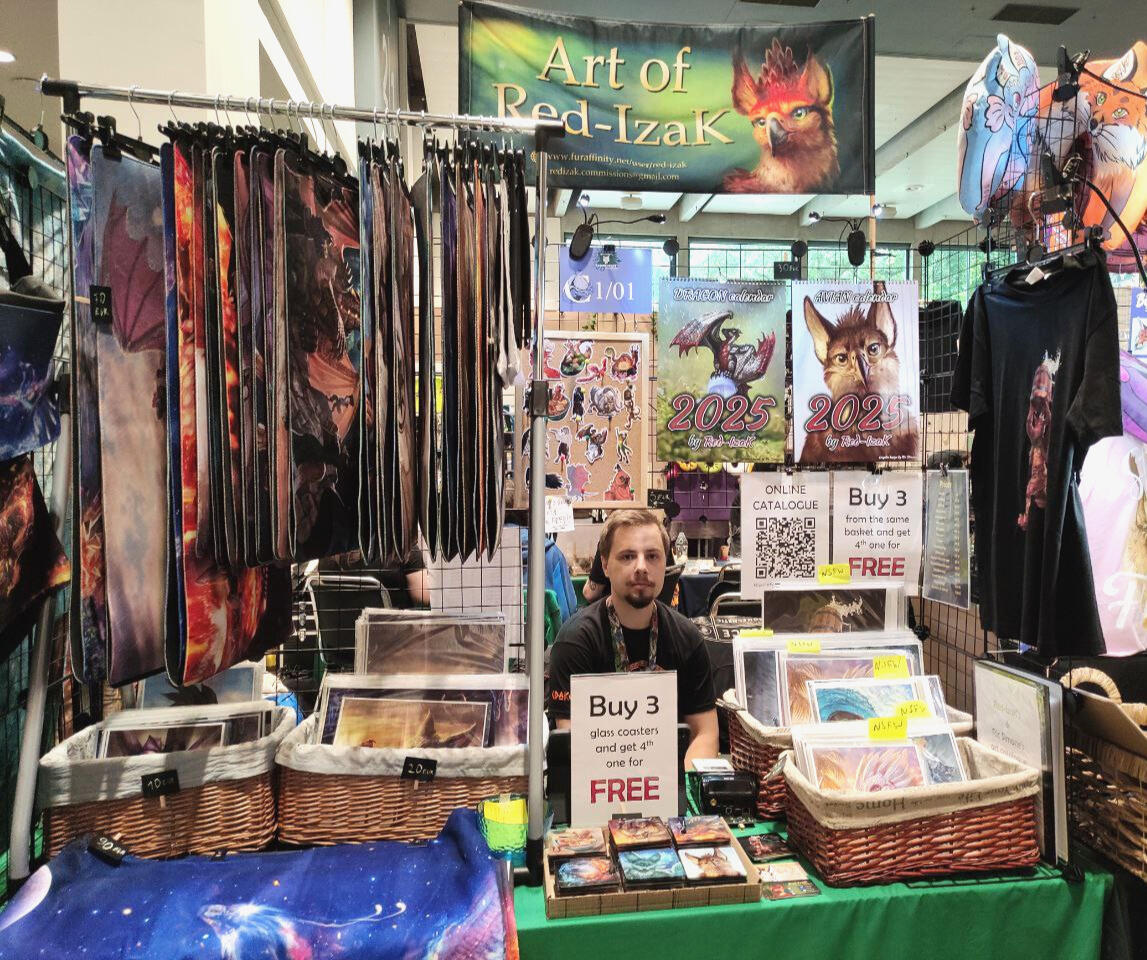 My name is Izak (Red-IzaK) and I post art online for over 20 years now! I'm a full time artist since January 2017.I started selling at Eurofurence 2017 with 20 prints and now I have over 400 individual patterns in 2025!